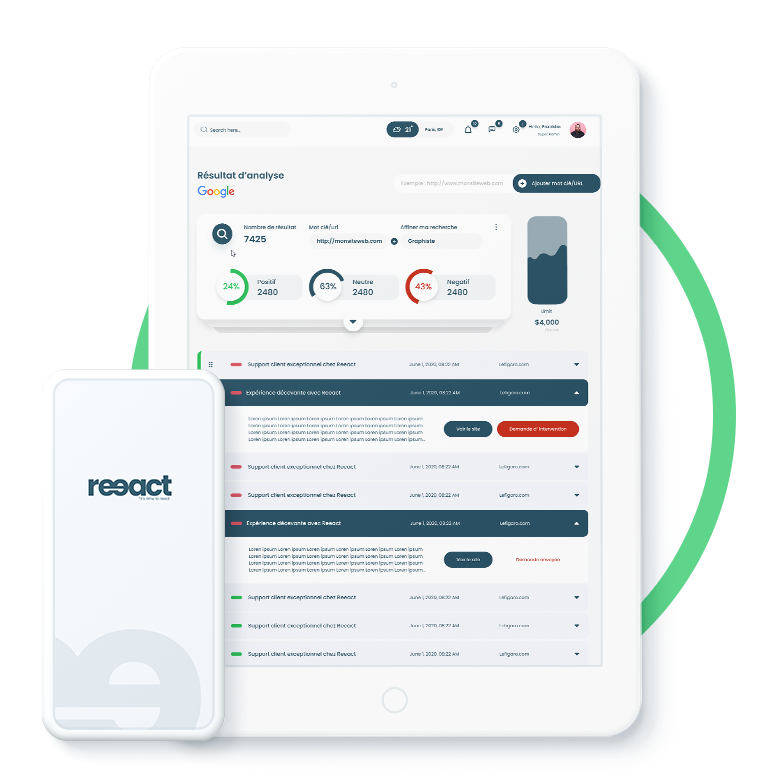 Notre plateforme révolutionnaire, marque un tournant décisif dans la gestion de votre réputation en ligne. Reeact, nous comprenons l'importance cruciale de votre image numérique dans un monde connecté en permanence.